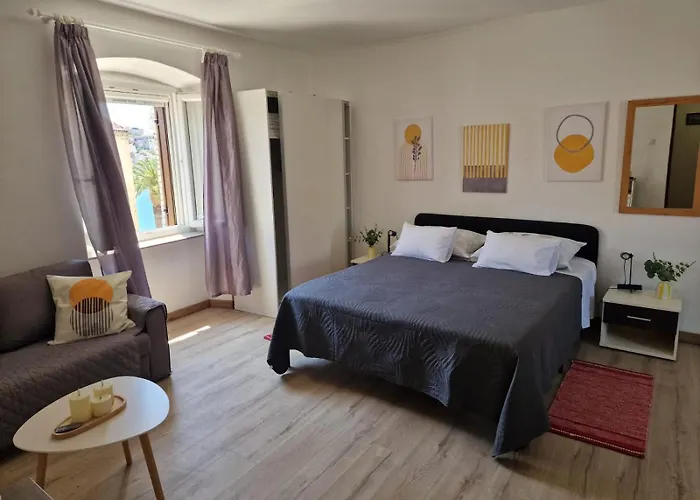 A Spliti repülőtér 4 km-re, a Kamerlengo vár pedig 12 percnyi sétára található az apartmantól. Trogir felfedezése során a vendégek kényelmesen elérhetik a Szent Lőrinc Katedrálist, amely nagyjából 600 méterre van. A Szent Borbála-templom nagyjából egy 5 perces sétára helyezkedik el az ingatlantól.